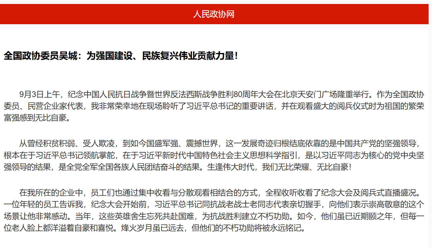 全國(guó)政協(xié)委員吳城:為強(qiáng)國(guó)建設(shè)、民族復(fù)興偉業(yè)貢獻(xiàn)力量!